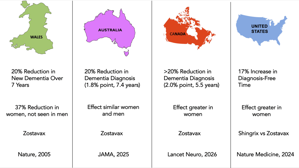 Dr. Eric Topol shared a summary of recent studies showing the impact of the Shingles vaccine on dementia – primarily Alzheimers.