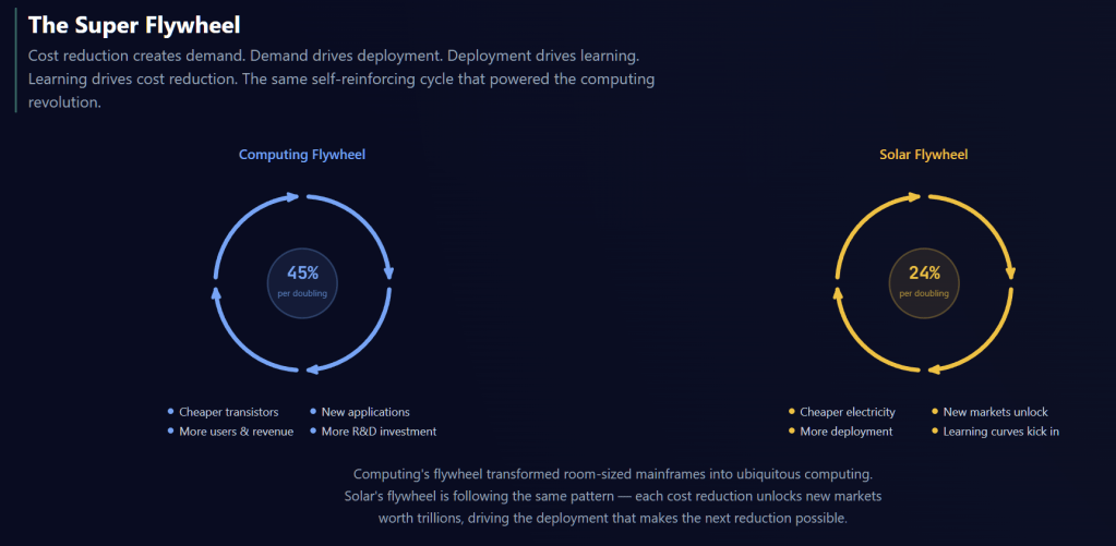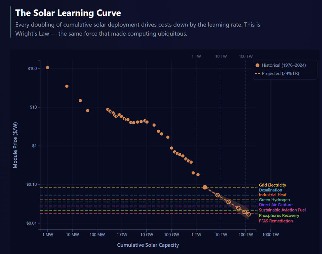 Cost reduction creates demand. Demand drives deployment. Deployment drives more learning curves and cost reduction.