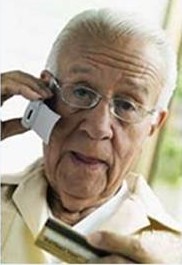 The old man hangs up his phone and turns to his wife.
