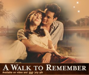 A Walk To Remember is a 2002 American romance film based on the 1999 romance novel of the same name by Nicholas Sparks. (see wikipedia)