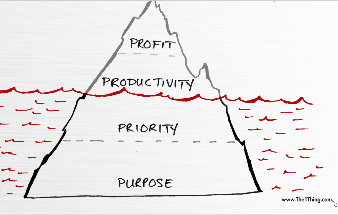 In my favorite book the authors use the analogy of an iceberg with the base being Purpose. Purpose informs priority which leads to productivity which in turn leads to profit. https://uploads.disquscdn.com/images/d6d9969e350530faf2288a5f9eb783c01583215648d257ce35f95f14ce8ea984.png