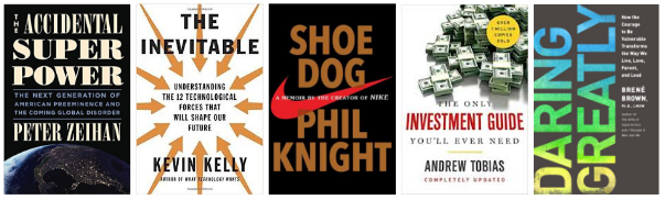 2. The Inevitable by Kevin Kelly: Kevin Kelly talks technology in a way only he can. He takes twelve verbs that technology has impacted (cognifying, sharing, updating, etc.) and takes them to their logical end. In that process, he gives us a view into what our future might be. It is powerful.