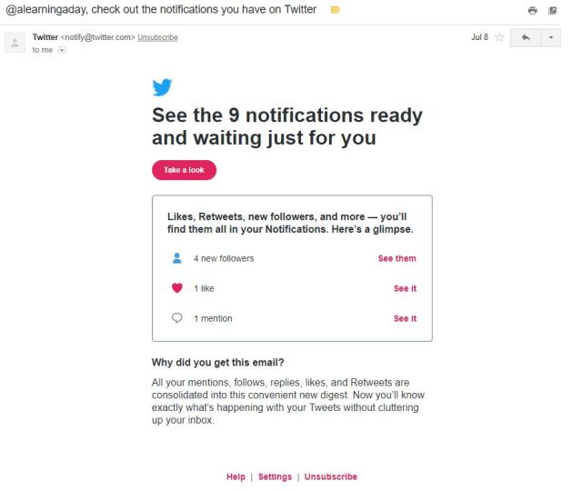 Twitter, recently, shifted its notification strategy pretty drastically as well. This was what a notification email from Twitter looked like until the first week of July.