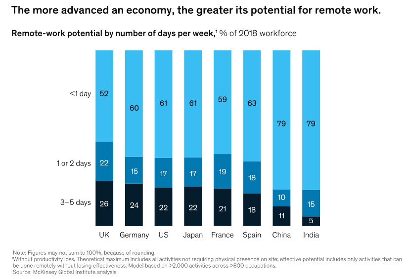 The McKinsey Global Institute shared an interesting chart analyzing the potential for remote work within various economies.