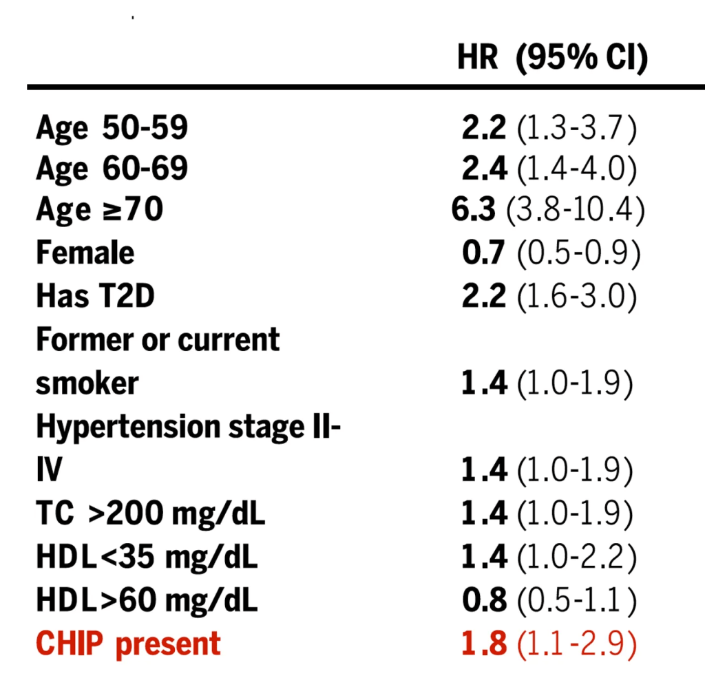 He makes the case with a simple chart that shows that the risk of heart rate with CHIP present goes up 1.8x.