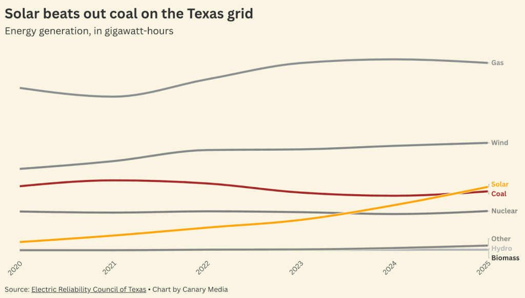 Private energy markets in Texas, meanwhile, are leading the way. So much so that solar has already overtaken coal on the Texas grid.
