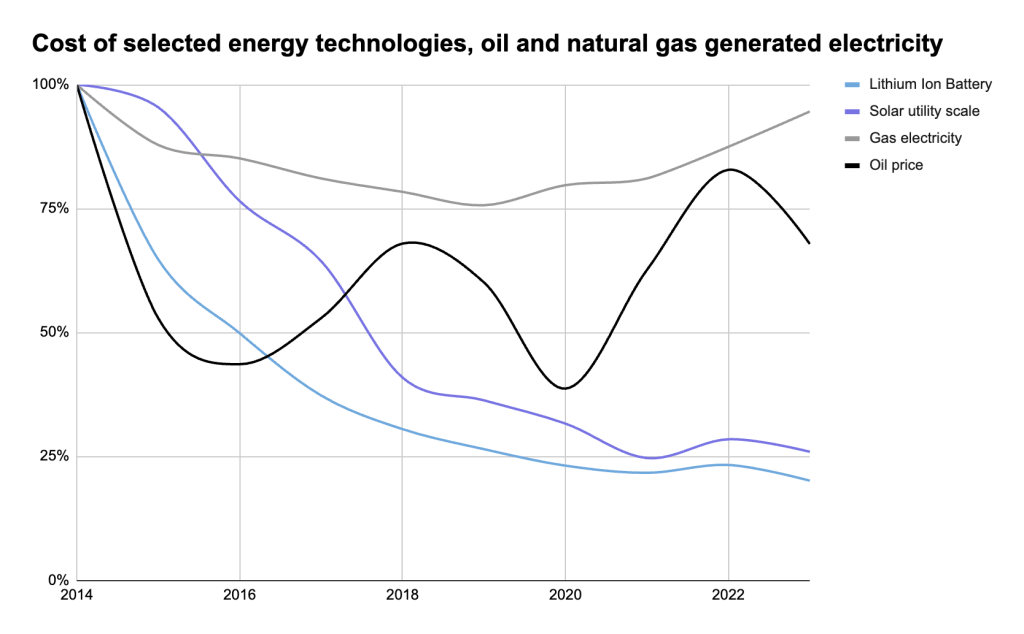 (1) One of my favorite Exponential View articles is about how energy has gone from commodity to technology. This table tells the story beautifully.