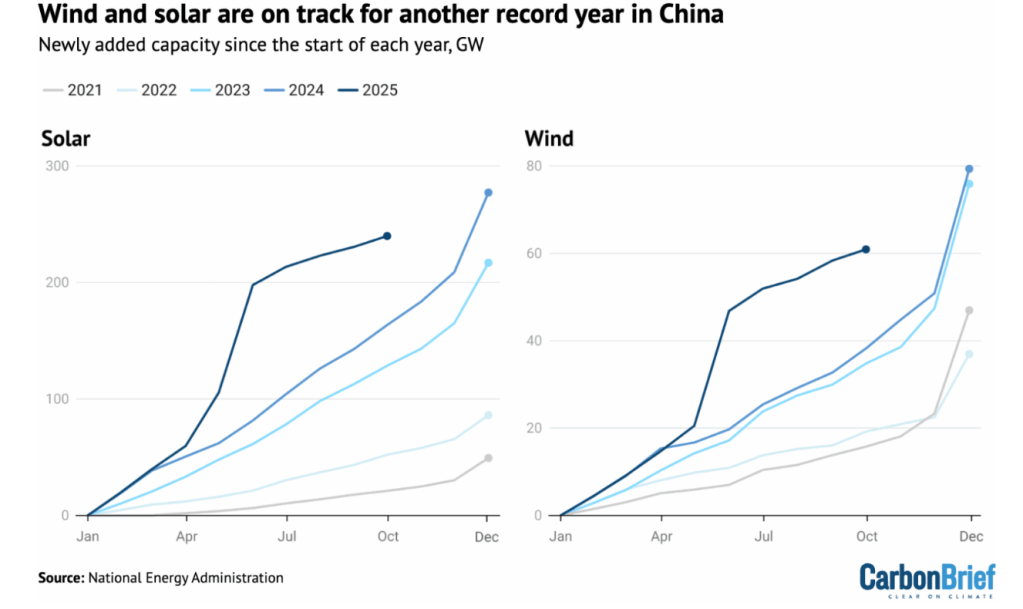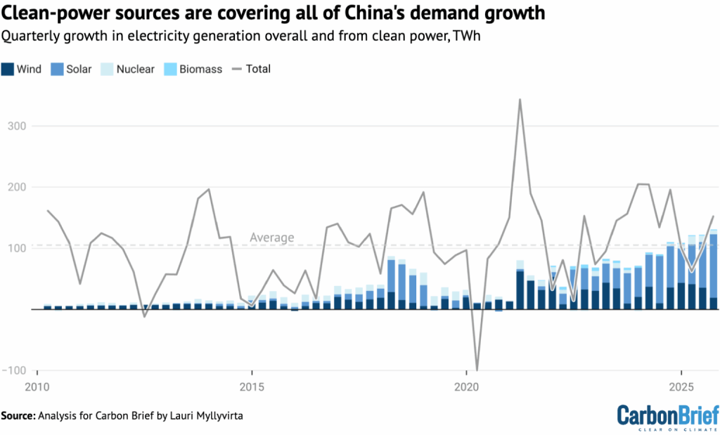 But, despite this rapid increase, CO2 emissions from China are flat or declining because new capacity is all renewable.