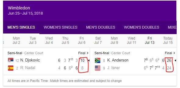 The Wimbledon semi final score line tells the story of the men’s bracket. The athleticism on display from Djokovic and Anderson was something else.
